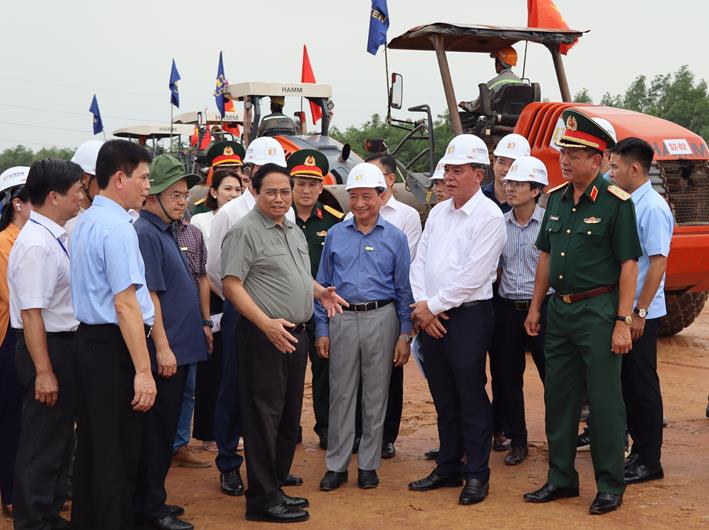 Với Dự án Sân bay Long Thành, Thủ tướng Chính phủ Phạm Minh Chính cho biết, đây là lần thứ 4 có mặt tại dự án để kiểm tra. Thủ tướng đánh giá tiến độ đã cơ bản ổn, lạc quan hơn những lần trước nhưng không thể chủ quan vì thời tiết còn nhiều khắc nghiệt.
