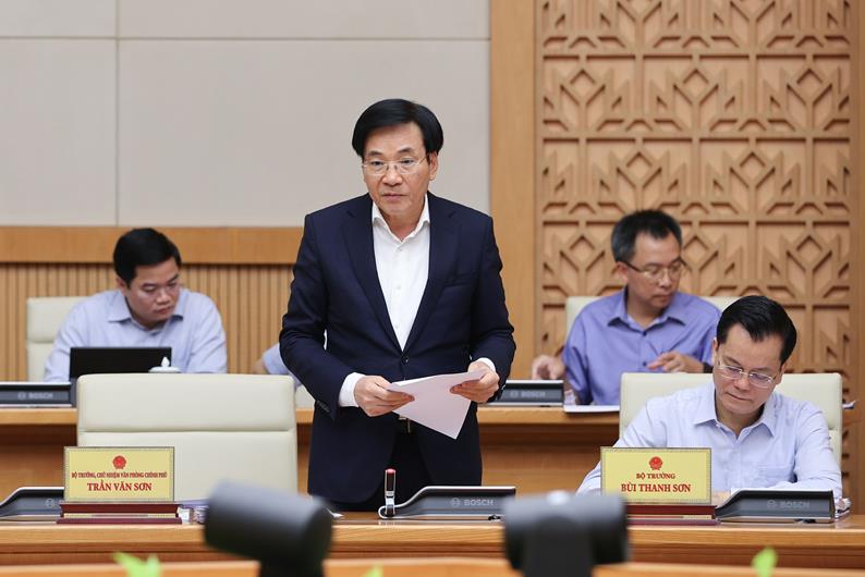 Bộ trưởng, Chủ nhiệm Văn phòng Chính phủ Trần Văn Sơn phát biểu tại phiên họp - Ảnh: VGP/Nhật Bắc