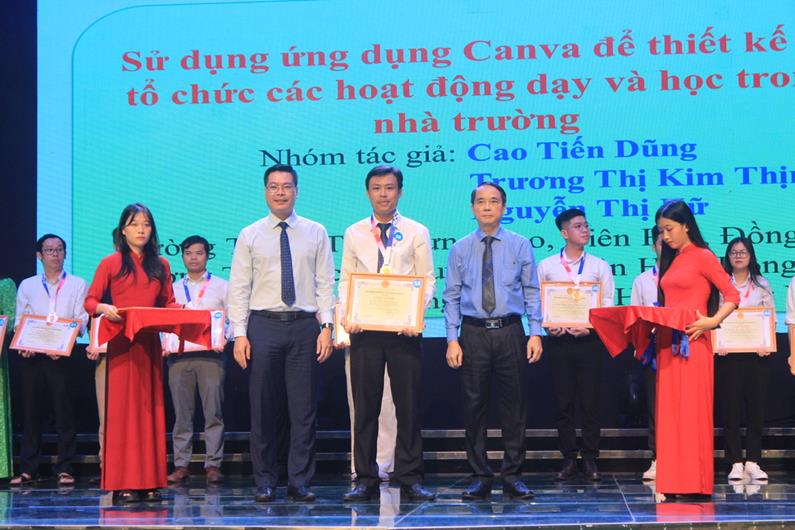 Các đại biểu trao giải cho các cá nhân có giải pháp đoạt giải tại hội thi