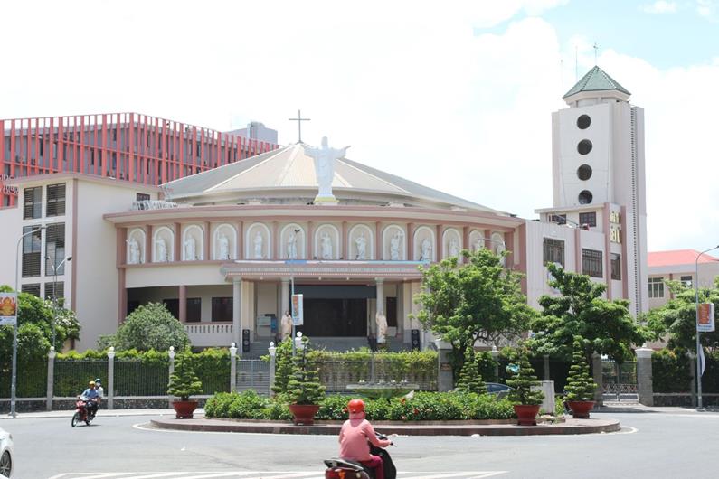 Mặt tiền Nhà thờ Biên Hòa nhìn từ đường Cách Mạng Tháng 8