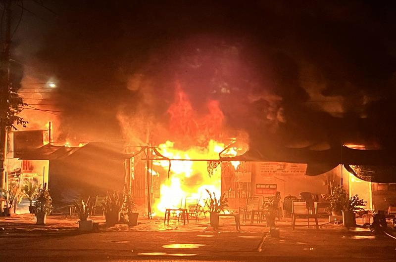 Theo thông tin ban đầu, khoảng 20 giờ ngày 14-11, tiệm sửa xe M.Đ. bất ngờ bốc cháy. Người dân địa phương và những người bên trong tiệm nhanh chóng tự kéo vòi nước, dùng bình chữa cháy xử lý bước đầu nhưng không kịp. Ngọn lửa đã bùng phát lớn, nhiều chai hóa chất, dung môi bên trong tiệm sửa xe bị cháy tỏa ra nhiệt lượng lớn.