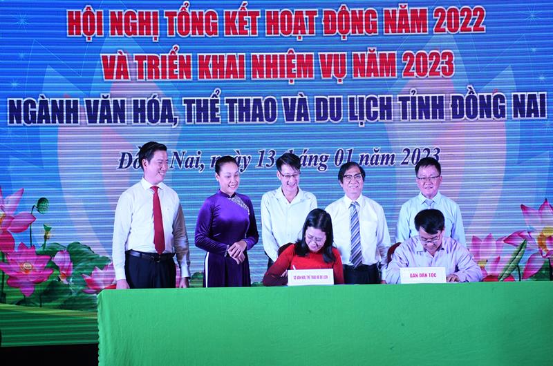 Phó Chủ tịch UBND tỉnh Nguyễn Sơn Hùng chứng kiến lễ ký kết giữa Sở VH-TTDL và Ban Dân tộc