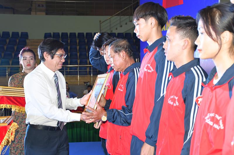 Phó Chủ tịch UBND tỉnh Nguyễn Sơn Hùng trao Bằng khen của UBND tỉnh cho các tập thể, nhóm VĐV đạt thành tích cao