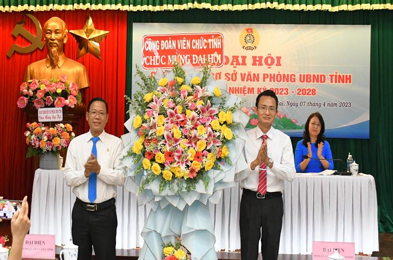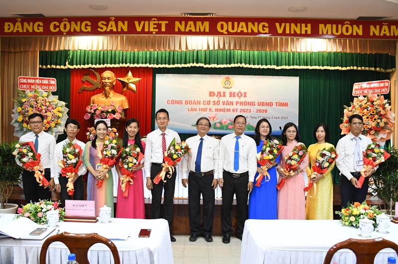 Chủ tịch Công đoàn Viên chức tỉnh cùng lãnh đạo Văn phòng UBND tỉnh tặng hoa chúc mừng Ban chấp hành mới