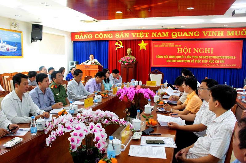 TTĐT - Sáng 4-4, Đoàn Đại biểu Quốc hội (ĐBQH) tỉnh đã tổ chức hội nghị tổng kết Nghị quyết liên tịch 525/2012/NQLT/UBTVQH13-ĐCTUBTWMTTQVN về việc tiếp xúc cử tri (TXCT) (gọi tắt là Nghị quyết 525). Phó bí thư Tỉnh ủy, Trưởng Đoàn ĐBQH tỉnh Quản Minh Cường đã chủ trì hội nghị; cùng dự có lãnh đạo HĐND, UBND, Ủy ban MTTQ Việt Nam…