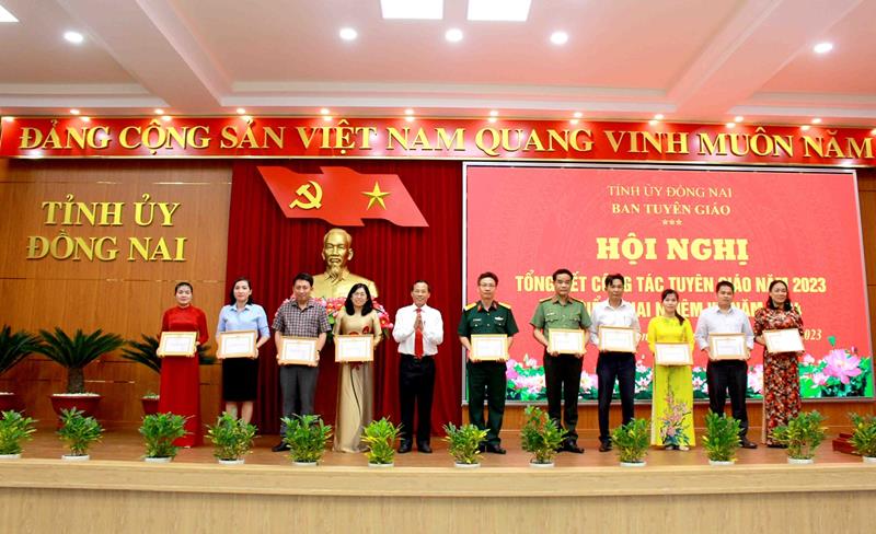Trưởng Ban Tuyên giáo Tỉnh ủy Phạm Xuân Hà trao khen thưởng cho các tập thể, cá nhân đạt thành tích xuất sắc trong công tác tuyên giáo năm 2023