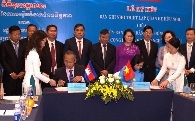 Lễ ký kết Bản Ghi nhớ thiết lập quan hệ hữu nghị giữa UBND tỉnh Đồng Nai và Chính quyền tỉnh Kampong Thom lần này sẽ làm cơ sở để hai bên tăng cường hơn nữa các hoạt động hợp tác hữu nghị trong thời gian tới.