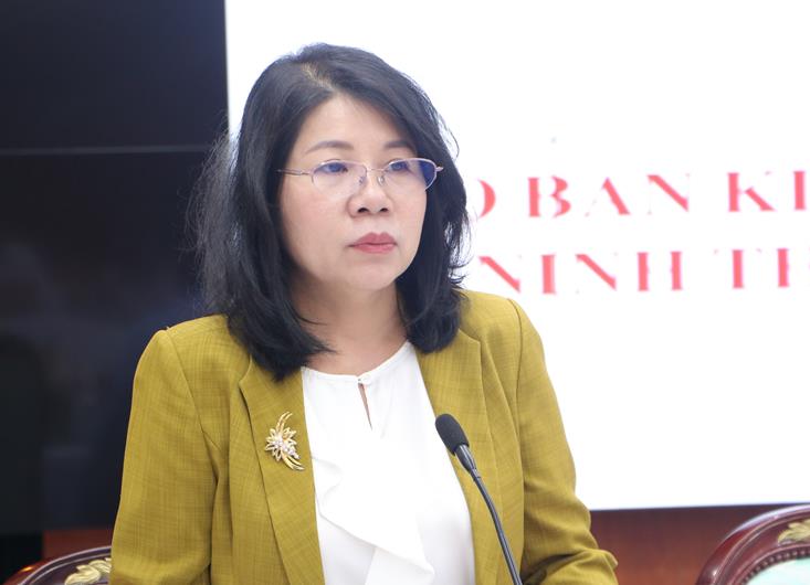 Phó Chủ tịch HĐND tỉnh Hoàng Thị Bích Hằng phát biểu tại hội nghị.