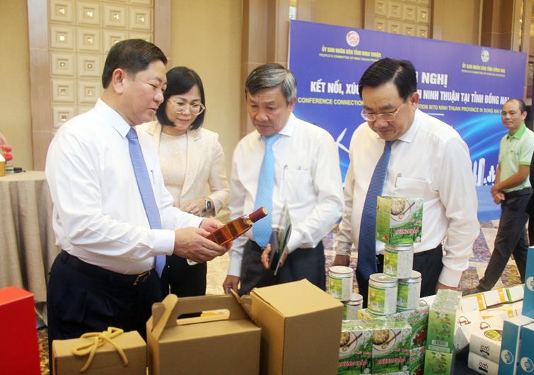 Lãnh đạo tỉnh Đồng Nai tham quan gian trưng bày sản phẩm OCOP, đặc sản của Ninh Thuận tại hội nghị.