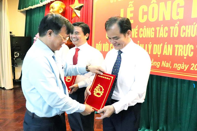 Tại buổi lễ, Giám đốc Sở Nội vụ đã công bố các Quyết định của Chủ tịch UBND tỉnh về việc tổ chức lại và thành lập 3 Ban Quản lý dự án tỉnh và công tác cán bộ. Cụ thể, Quyết định số 2437/QĐ-UBND ngày 16-9-2022 về tổ chức lại Ban quản lý dự án đầu tư xây dựng tỉnh Đồng Nai; Quyết định số 2438/QĐ-UBND ngày 16-9-2022 về việc thí điểm thành lập Ban Quản lý dự án bồi thường, giải phóng mặt bằng và hỗ trợ tái định cư tỉnh; Quyết định số 2439/QĐ-UBND ngày 16-9-2022 thành lập Ban Quản lý dự án đầu tư xây dựng công trình giao thông tỉnh.