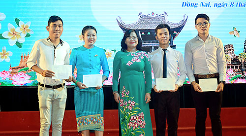 Tính đến nay, Đồng Nai đã cấp 235 suất học bổng cho du học sinh Lào và Campuchia, trong đó có 128 sinh viên đã tốt nghiệp. Hiện nay có 128 du học sinh Lào và Campuchia đang học tập tại 4 trường đại học, cao đẳng trên địa bàn Đồng Nai. Dịp này, UBND tỉnh đã trao quà cho các du học sinh Lào, Campuchia.
