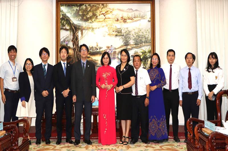 Phó Chủ tịch UBND tỉnh Nguyễn Thị Hoàng chụp hình lưu niệm với đoàn công tác Nhật Bản.