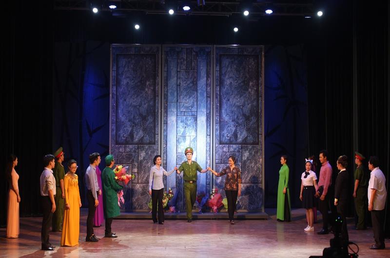 Nghệ sĩ Nguyễn Phước Dư (giữa) vào vai Tuấn trong vở cải lương Hồi sinh đoạt giải A Giải thưởng Văn học nghệ thuật Trịnh Hoài Đức lần 5, giai đoạn 2016-2022
