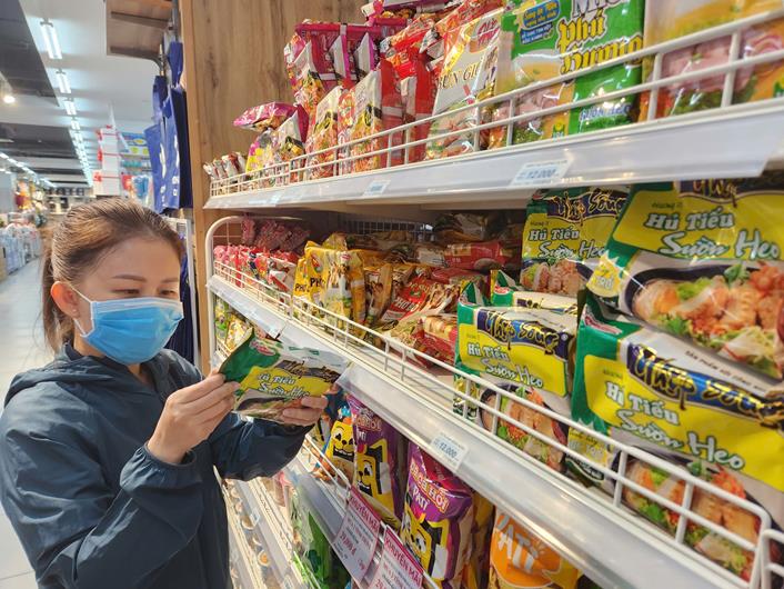 Người tiêu dùng chọn mua các sản phẩm tiêu dùng tại một siêu thị ở thành phố Biên Hòa