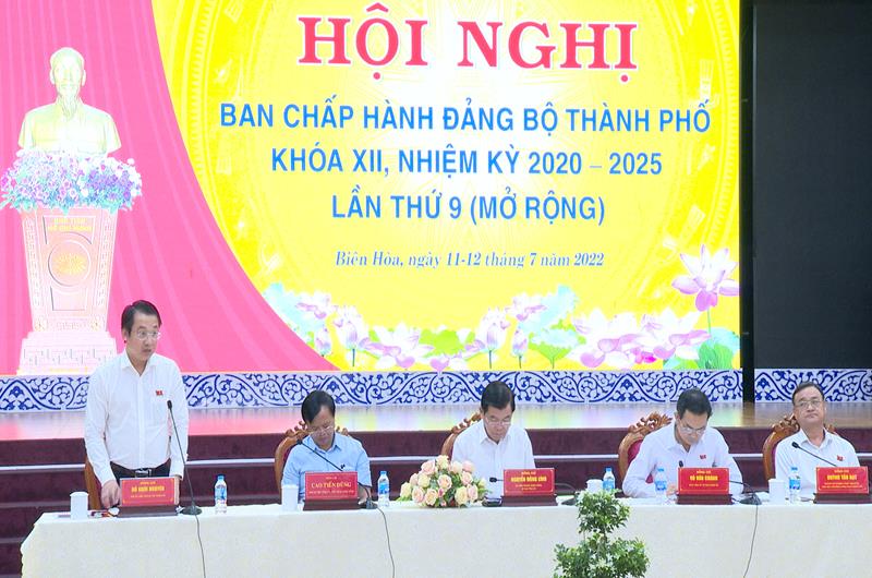 Phó bí thư Thành ủy Biên Hòa Đỗ Khôi Nguyên thảo luận tại hội nghị.