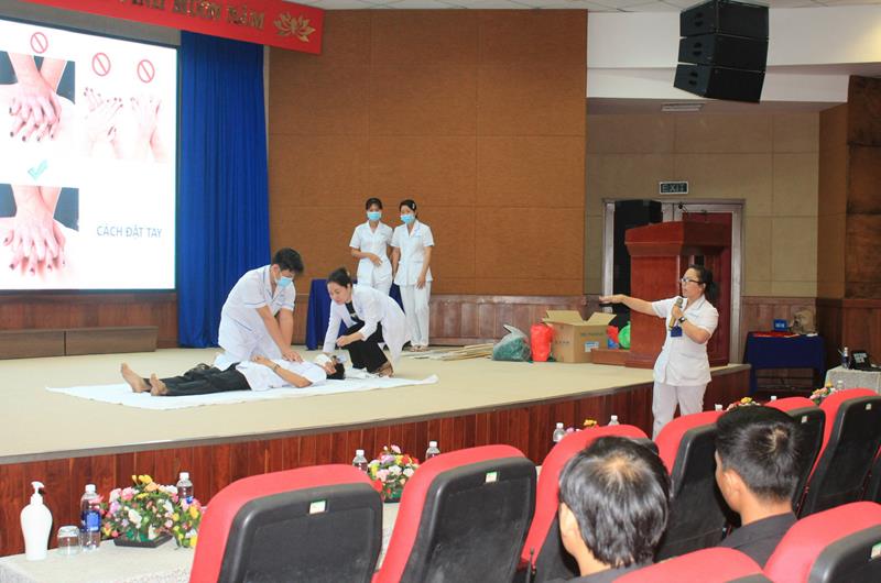 Các thành viên các CLB Hỗ trợ nhân dân và đảm bảo an toàn giao thông được tập huấn kỹ năng sơ cấp cứu