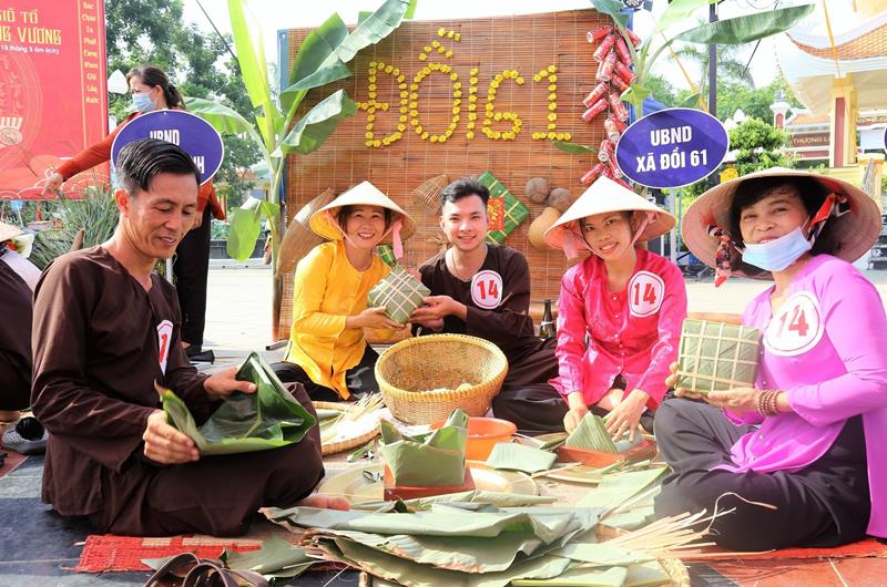 Trong 2 ngày 27 và 28-4, tại Công viên Văn hóa Hùng Vương, UBND H.Trảng Bom tổ chức Hội thi Gói, nấu bánh chưng, giã bánh giầy dâng Vua Hùng năm 2023.