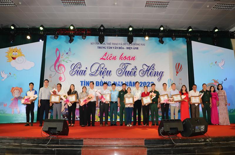 Ban tổ chức trao giải toàn đoàn cho các đơn vị tham gia Liên hoan Giai điệu tuổi hồng tỉnh Đồng Nai năm 2022