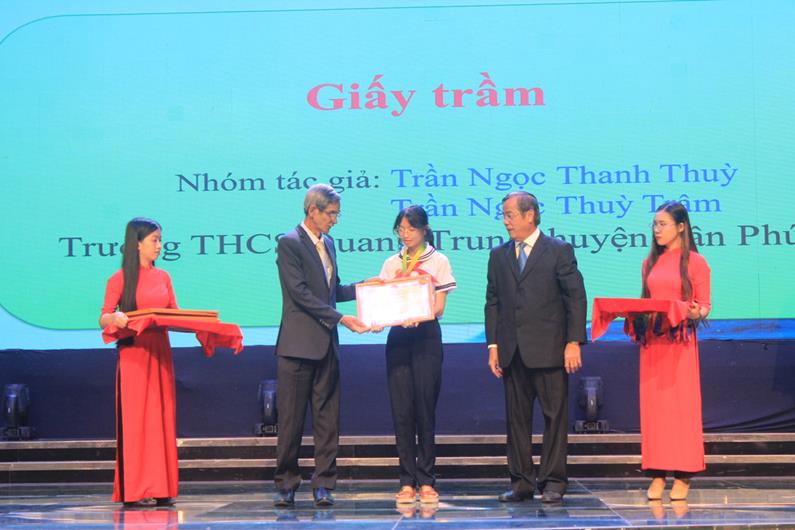 Ban Tổ chức trao giấy khen cho các em đạt giải cao trong cuộc thi sáng tạo thanh thiếu niên, nhi đồng tỉnh Đồng Nai năm 2023