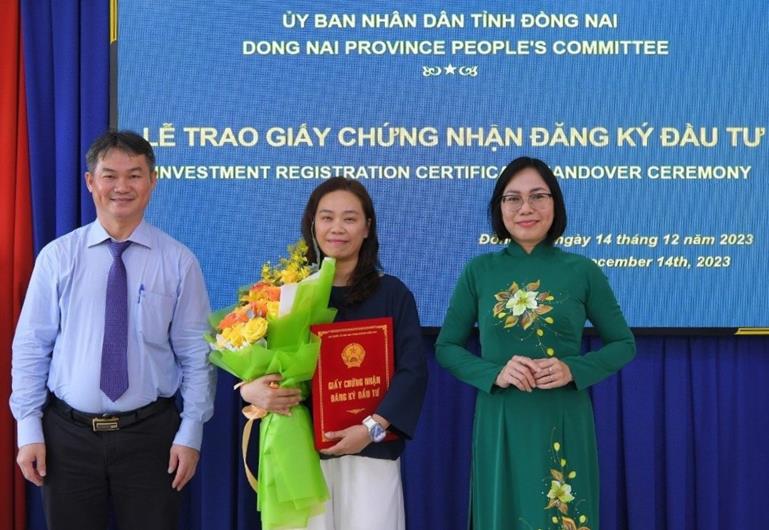(CTT-Đồng Nai) - Chiều 14-12, tại Ban Quản lý các khu công nghiệp (KCN) tỉnh, UBND tỉnh tổ chức trao giấy chứng nhận đăng ký đầu tư cho 3 dự án có vốn đầu tư nước ngoài (FDI) đến từ Đài Loan và Singapore. Tổng vốn đăng ký đầu tư cho các dự án là 109 triệu USD.