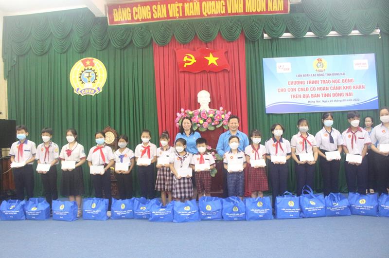 Liên đoàn Lao động (LĐLĐ) tỉnh vừa tổ chức trao học bổng cho 100 con công nhân lao động có hoàn cảnh khó khăn, có cha, mẹ mất do dịch Covid-19. Mức học bổng trị giá 1 triệu đồng/suất, do Tập đoàn Viettel hỗ trợ thông qua Quỹ tấm lòng vàng Báo Lao động. Ngoài ra, LĐLĐ tỉnh cũng trao tặng thêm mỗi em một phần quà trị giá 250 ngàn đồng.