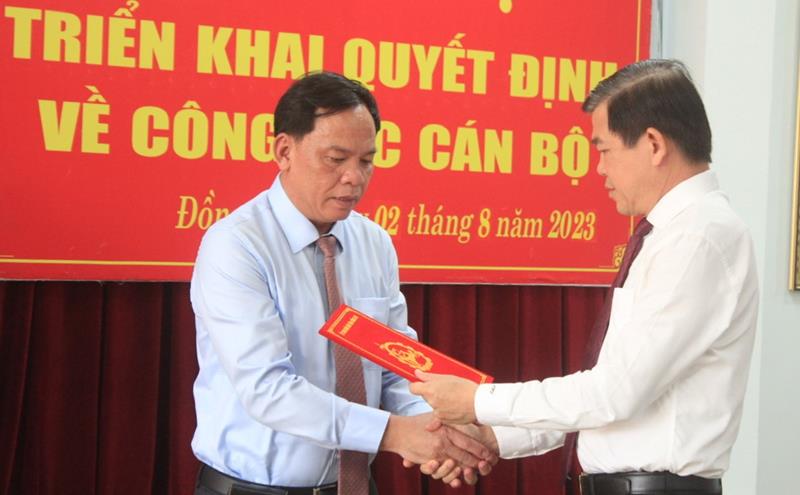 Bí thư Tỉnh ủy Nguyễn Hồng Lĩnh trao quyết định cho đồng chí Võ Tấn Đức