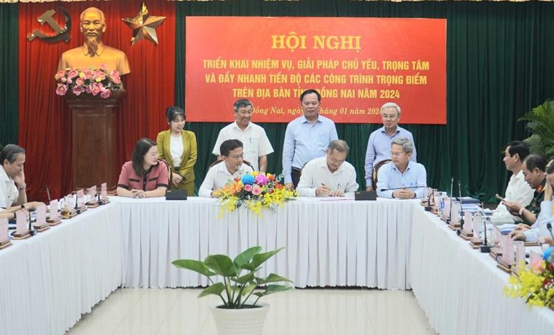 (CTT-Đồng Nai) - Ngày 2-1, UBND tỉnh đã tổ chức hội nghị triển khai nhiệm vụ, giải pháp chủ yếu, trọng tâm và đẩy nhanh tiến độ các công trình trọng điểm trên địa bàn tỉnh năm 2024. Tham dự và điều hành hội nghị có các đồng chí: Hồ Thanh Sơn, Phó Bí thư Thường trực Tỉnh ủy; Võ Tấn Đức, Ủy viên Ban TVTU, quyền Chủ tịch UBND tỉnh; Cao Văn Quang, Ủy viên Ban TVTU, Chủ tịch UBMTTQ Việt Nam tỉnh; Hoàng Thị Bích Hằng, Phó Chủ tịch HĐND tỉnh. Cùng dự còn có các đồng chí Ủy viên Ban TVTU, các Phó Chủ tịch UBND tỉnh, lãnh đạo các sở, ngành và các địa phương trong tỉnh. Hội nghị cũng được kết nối với các đầu cầu tại UBND các địa phương trong tỉnh.