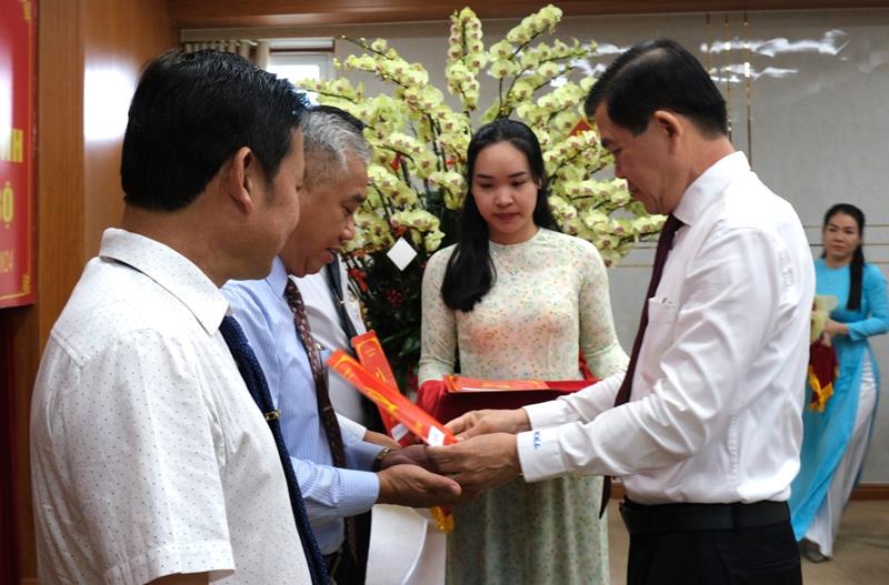 Bí thư và Phó Bí thư Thường trực Tỉnh ủy chúc mừng các đồng chí được nhận quyết định về công tác cán bộ.