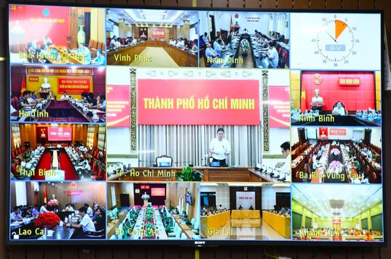 Quang cảnh trực tuyến giữa điểm cầu Chính phủ và các địa phương