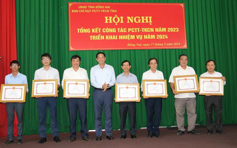 Dịp này, Chủ tịch UBND tỉnh cũng đã tặng bằng khen cho 7 tập thể và 9 cá nhân có nhiều đóng góp trong việc thực hiện phong trào thi đua “Chủ động phòng chống thiên tai, xây dựng cộng đồng an toàn” đến năm 2025 trên địa bàn Đồng Nai.