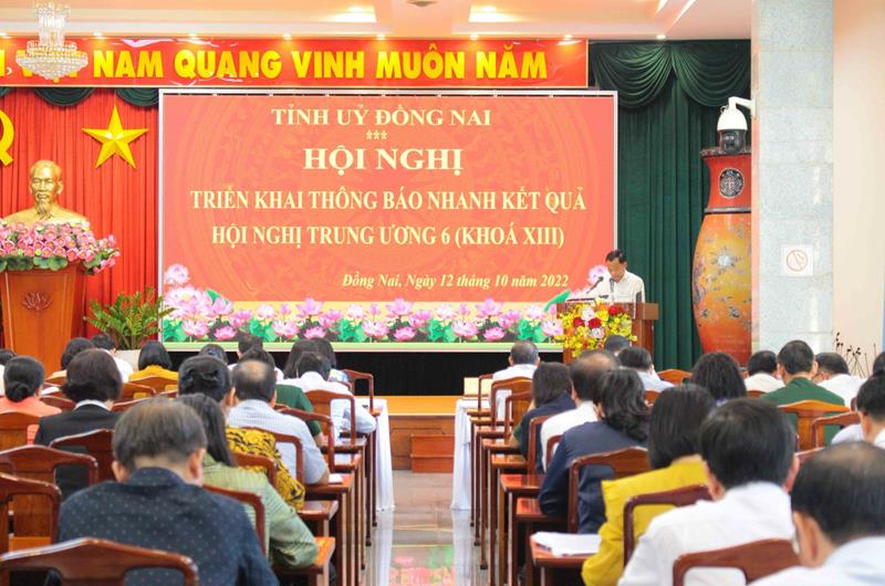 Thông báo nhanh kết quả Hội nghị Trung ương 6 (khóa XIII) đến cán bộ, đảng viên trong tỉnh, Ủy viên Ban TVTU, Trưởng Ban Tuyên giáo Tỉnh ủy Phạm Xuân Hà cho biết, sau 7 ngày làm việc (từ ngày 3-10 đến ngày 9-10) dưới sự chủ trì của đồng chí Tổng Bí thư Nguyễn Phú Trọng chủ trì, Hội nghị lần thứ sáu Ban Chấp hành Trung ương Đảng khoá XIII đã hoàn thành nội dung chương trình đề ra.