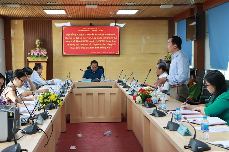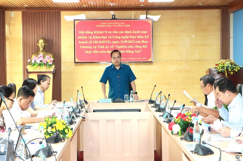 TTĐT - Ngày 23-3, Phó Bí thư Tỉnh ủy, Trưởng Đoàn ĐBQH tỉnh Quản Minh Cường chủ trì cuộc họp Hội đồng KH-CN tư vấn xác định danh mục nhiệm vụ KH-CN thực hiện Kế hoạch số 186 -KH/TU ngày 31-8-2022 của Ban Thường vụ Tỉnh ủy về Nghiên cứu, tổng kết thực tiễn trên địa bàn tỉnh Đồng Nai. Cùng dự có các đồng chí: Huỳnh Thanh Bình, Ủy viên Ban TVTU, Trưởng Ban Kiểm tra Tỉnh ủy; Đặng Minh Nguyệt, Ủy viên Ban TVTU, Trưởng Ban Tổ chức Tỉnh ủy.