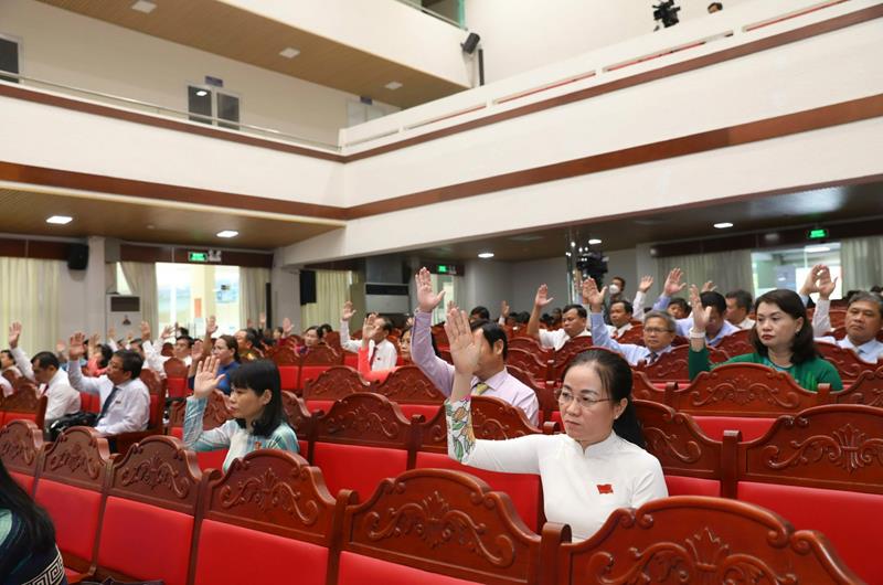 Các đại biểu HĐND tỉnh biểu quyết thông qua Nghị quyết về chất vấn và trả lời chất vấn tại kỳ họp thứ 8, HĐND tỉnh khóa X