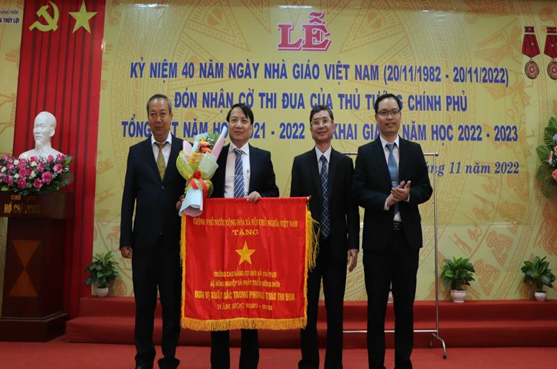 Ông Nguyễn Duy Vũ, Bí thư Đảng ủy khối cơ sở, Bộ NN-PTNT trao tặng Cờ thi đua của Thủ tướng Chính phủ cho tập thể Trường cao đẳng Cơ giới và Thủy lợi
