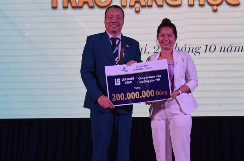 TS Nguyễn Tiến Mạnh, Hiệu trưởng Trường Cao đẳng Công nghệ và quản trị Sonadezi nhận học bổng do doanh nghiệp tài trợ