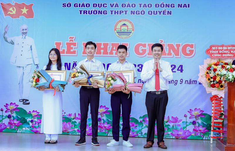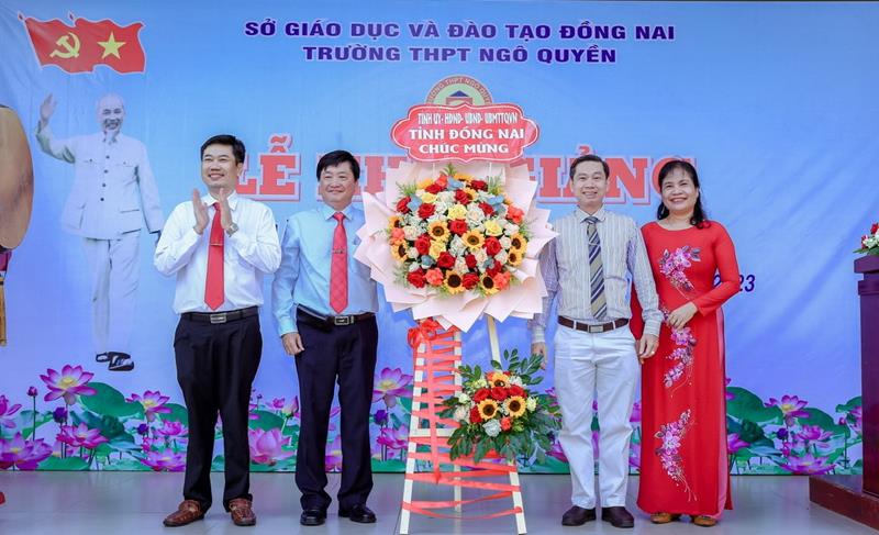 (CTT-Đồng Nai) - Hòa chung không khí náo nức của thầy trò cả nước, sáng 5-9, thầy trò Trường THPT Ngô Quyền (TP.Biên Hòa) đã bắt đầu năm học mới 2023-2024 bằng lễ khai giảng. Đến dự có các đồng chí: Viên Hồng Tiến, Chánh Văn phòng Tỉnh ủy; Đỗ Khôi Nguyên, Phó Bí thư Thành ủy, Chủ tịch UBND TP.Biên Hòa.