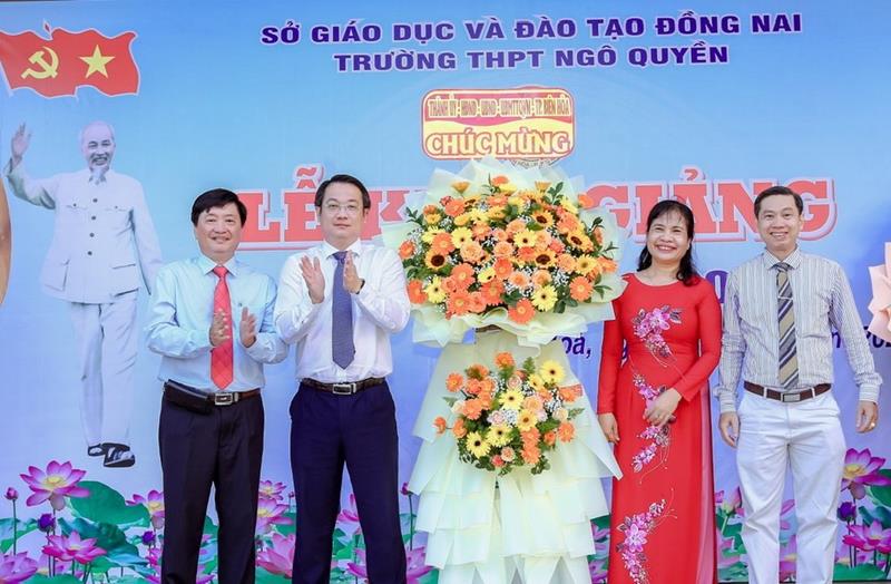 Chủ tịch UBND TP.Biên Hòa Đỗ Khôi Nguyên tặng hoa chúc mừng nhà trường