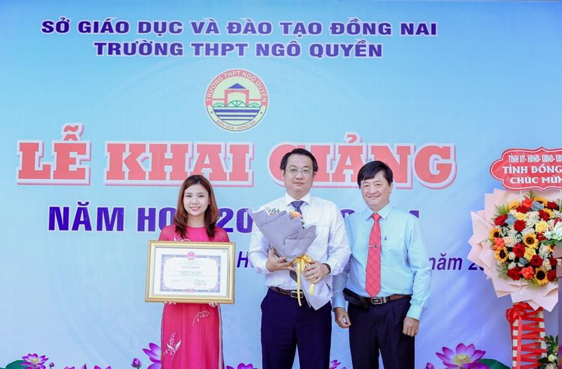 Chủ tịch UBND TP.Biên Hòa Đỗ Khôi Nguyên tặng bằng khen của UBND tỉnh cho giáo viên nhà trường
