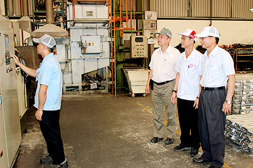 Ông Lee Yu Chi, Tổng giám đốc VPIC Group (ngoài cùng bìa phải) thăm công nhân làm việc tại nhà máy.Ông Nguyễn Vương Long, Phó tổng giám đốc Tập đoàn VPIC cho biết, khoảng 50% lao động (2.200 người) của tập đoàn đạt trình độ kỹ thuật từ trung cấp trở lên và khoảng 60% trong số đó xuất phát điểm chưa có tay nghề. “Với đội ngũ này, chúng tôi tự tin cung cấp các sản phẩm chất lượng cao, giá cả cạnh tranh và dịch vụ tốt cho khách hàng ở Bắc Mỹ, châu Âu và châu Á”, ông Long nói.