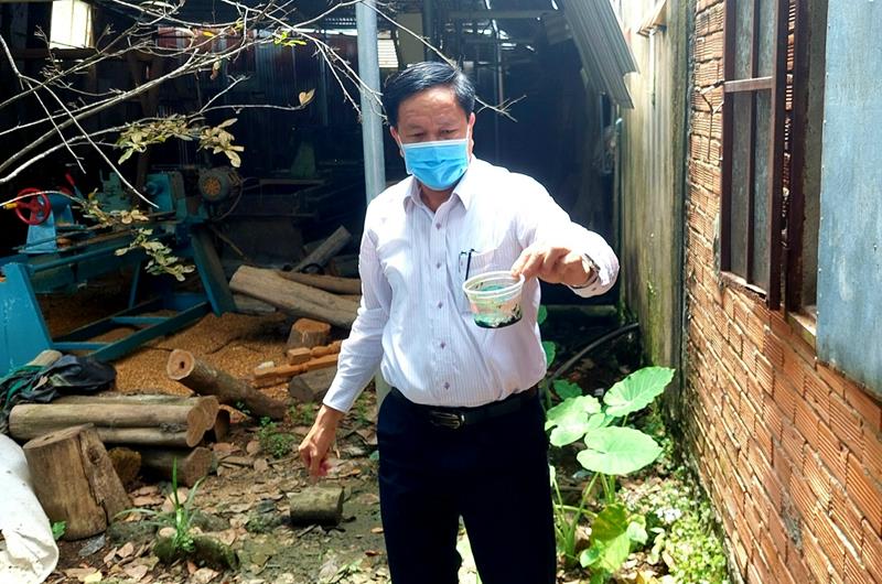 Kiểm tra công tác phòng bệnh sốt xuất huyết tại một hộ gia đình ở Định Quán