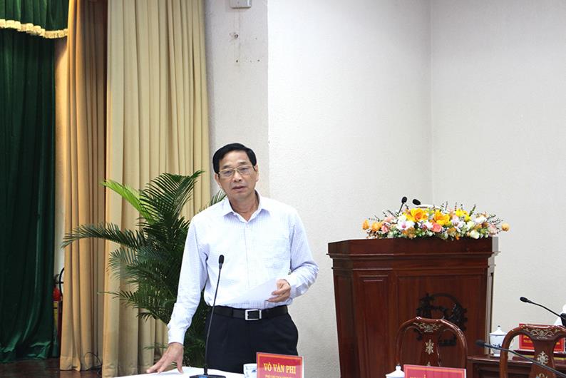 Phó Chủ tịch UBDN tỉnh Võ Văn Phi phát biểu tại cuộc họp