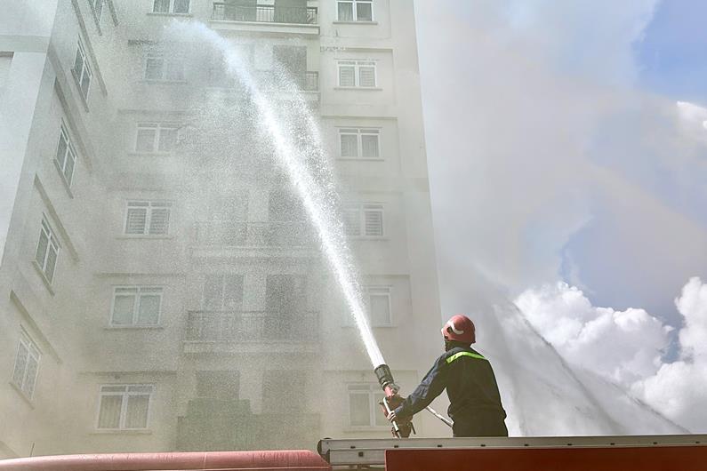 Lực lượng Cảnh sát phòng cháy, chữa cháy diễn tập chữa cháy tại khối nhà A5, chung cư Nguyễn Văn Trỗi (P.Quang Vinh, TP.Biên Hòa) vào tháng 8-2023