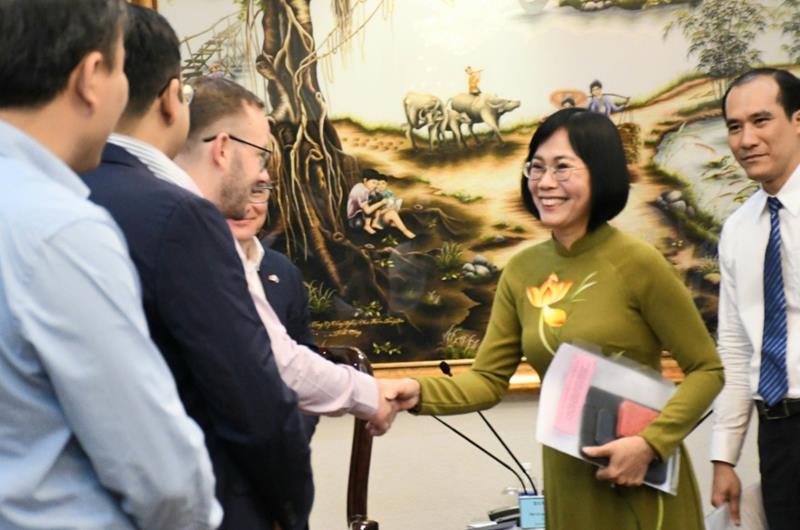 Phó Chủ tịch UBND tỉnh Nguyễn Thị Hoàng cùng đại diện lãnh đạo các sở, ngành tiếp đoàn công tác của Đại sứ quán Úc - ảnh K.Giới