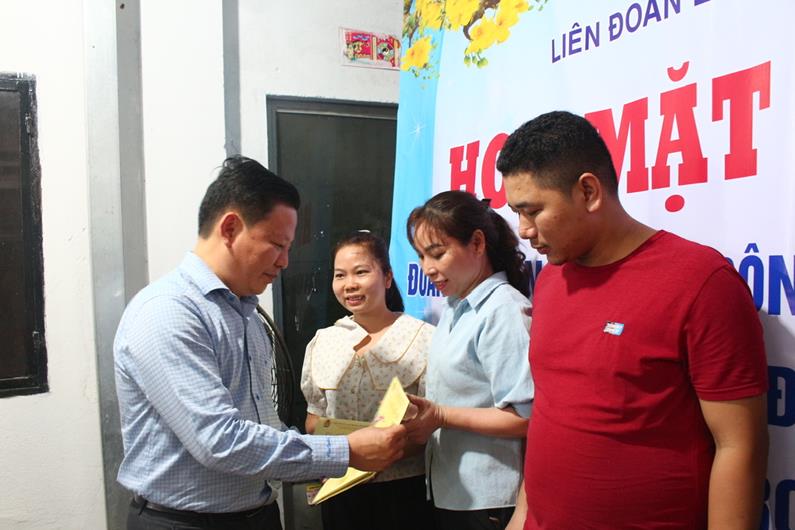 Đại diện Liên đoàn Lao động tỉnh tặng quà công nhân dịp Tết 2024