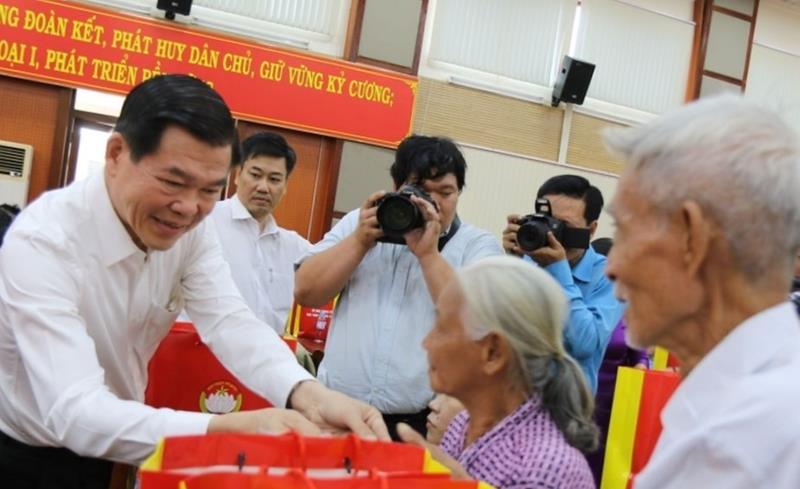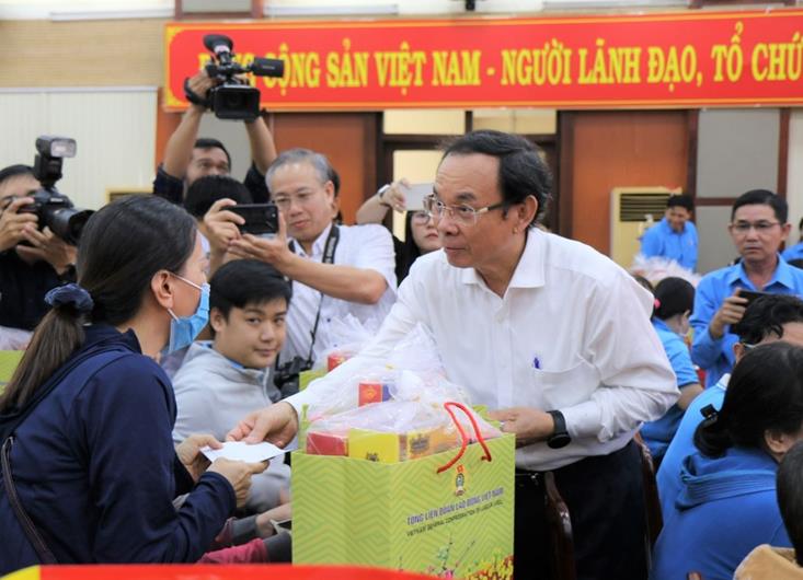 Ủy viên Bộ Chính trị, Bí thư Thành ủy TP.HCM Nguyễn Văn Nên trao quà tết của Trung ương cho hộ nghèo, gia đình khó khăn, công nhân hoàn cảnh khó khăn tại Đồng Nai