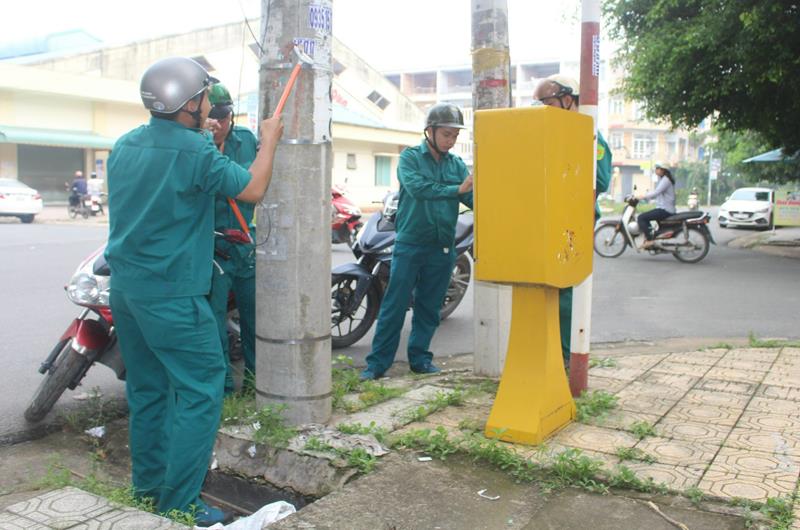 Lực lượng dân quân tự vệ P.Bửu Long, TP.Biên Hòa xóa rác quảng cáo ngoài trời
