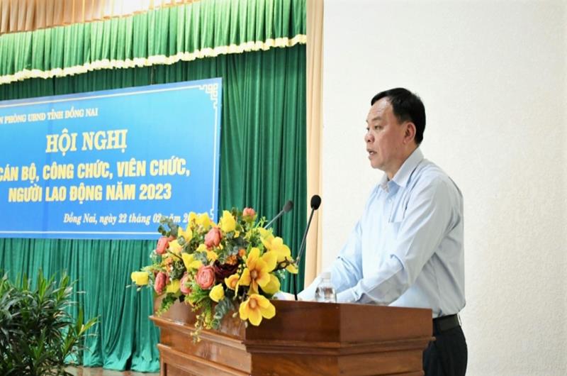 Phát biểu tại hội nghị, Phó Chủ tịch UBND tỉnh Võ Tấn Đức đã biểu dương những nỗ lực của tập thể lãnh đạo và cán bộ, công chức, viên chức Văn phòng UBND tỉnh đã hoàn thành tốt nhiệm vụ được giao, nhất là công tác tham mưu, tổng hợp giúp UBND tỉnh, Chủ tịch UBND tỉnh chỉ đạo, điều hành kịp thời và hiệu quả nhiệm vụ phát triển kinh tế - xã hội, quốc phòng - an ninh của tỉnh. Bên cạnh đó, Văn phòng cũng đã làm tốt công tác hậu cần và đảm bảo kỹ thuật, trang thiết bị, phương tiện để phục vụ hoạt động của UBND tỉnh.