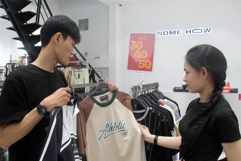 Một cửa hàng thời trang trên đường Phan Trung (thành phố Biên Hòa) áp dụng chương trình khuyến mãi cho dịp cuối năm.