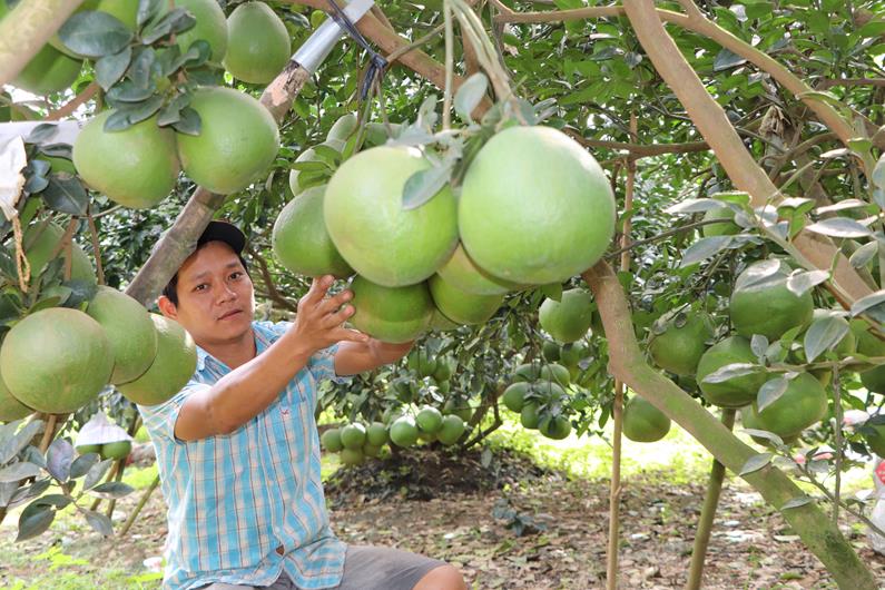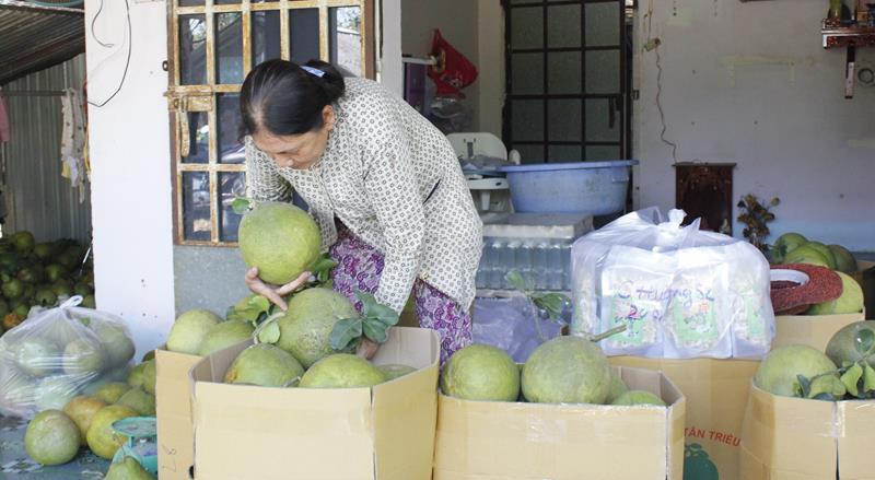 Nông dân trồng bưởi tại xã Bình Lợi thu hoạch bưởi Tết.