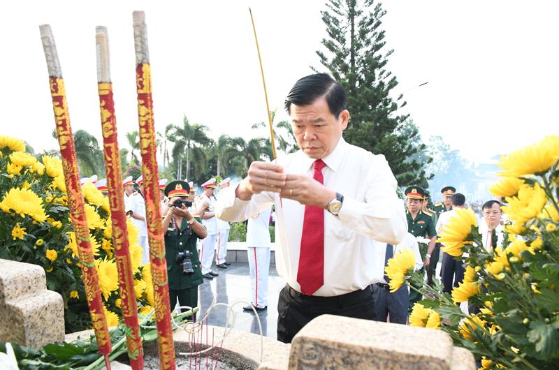 Chủ tịch UBND tỉnh Cao Tiến Dũng dâng hương tại Đài liệt sĩ nghĩa trang liệt sĩ tỉnh.